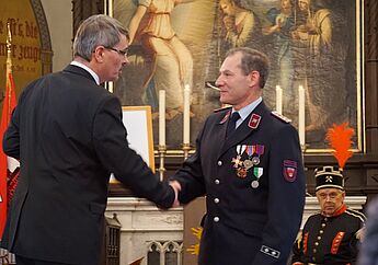 Freiwillige Feuerwehr Johanngeorgenstadt mit Bürgermeister Holger Hascheck
