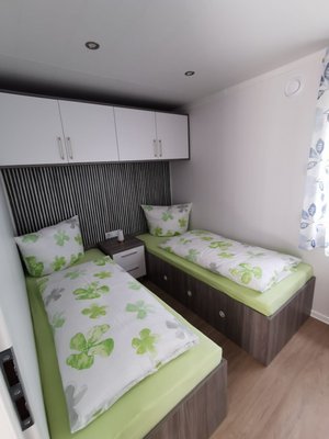 Auf 50qm ebenerdig befinden sich 2 Schlafzimmer mit je 2 Betten.