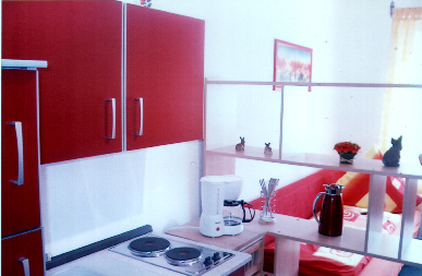 Wohnraum mit Einbauküche, DU, WC sep., Schlafraum mit 3 Betten ( Aufbettungen möglich).