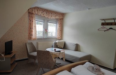 Doppelzimmer: 70,00 € mit Frühstück pro Person 1 Ferienwohnung (3 Sterne) im Haus: 80,00 € / Tag (Frühstück kann nach Absprache zugebucht werden) jeweils zzgl. Gästetaxe 2 DZ u. 1 Mehrbettz. (Dusche und WC im EG, Waschgelegenheit im Zimmer, Teppichboden, Flachbildfernseher, Zimmer gemütlich eingerichtet) 1 Ferienwohnung (3 Sterne) für 3 Erw. oder 2 Erw.+ 2 Kinder - Wohnzimmer, Schlafzimmer, voll ausgestattete Küche, Bad mit WC und Wanne, kleiner Flur, großer Balkon mit Blick zum Hochmoor - Frühstück bzw. HP können zugebucht werden - Haustiere auf Anfrage Dusche und WC im Erdgeschoß