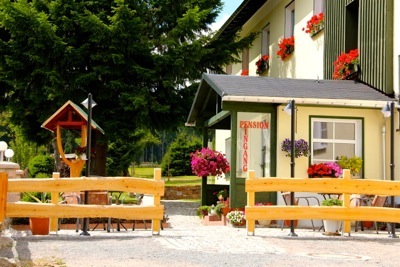 Das LANDHAUS SONNENTAU liegt direkt am KAMMWEG Erzgebirge/ Vogtland und an der KAMMLOIPE, sowie am STONEMAN MIRIQUIDI. Unsere Pension bietet Ihnen acht komfortabel eingerichtete Zimmer im Landhausstil. Die geschmackvoll ausgestatteten Räume verfügen über extra hohe Landhausbetten, Dusche, WC und TV. Sie genießen den Blick ins Grüne, inmitten der Natur und schlafen idyllisch ruhig. Im Gastraum beginnen unsere Gäste den Tag mit einem großen Frühstücksbuffet, mit hausgemachten Marmeladen, frischen Bäckerbrötchen und einer reichhaltigen Bio-Müsli-Ecke. Zum Abendessen verwöhnen wir unsere Gäste mit erzgebirgischen Spezialitäten. Im Winter bieten wir Ihnen jeden Tag zwei frisch zubereitete 3-Gänge-Menüs zur Wahl, sowie einmal wöchentlich eine rustikale kalte Platte an. Im Sommer können Sie aus einer kleinen täglich wechselnden Abendkarte auswählen.